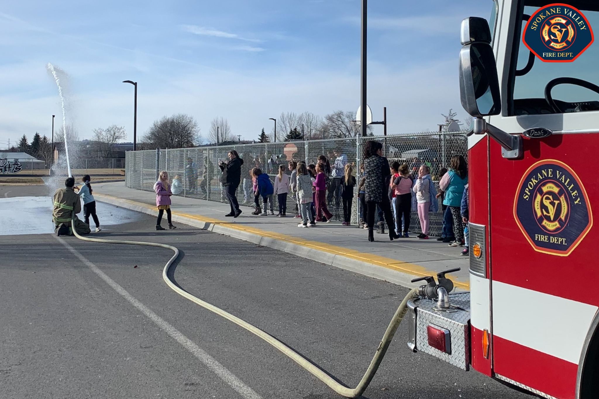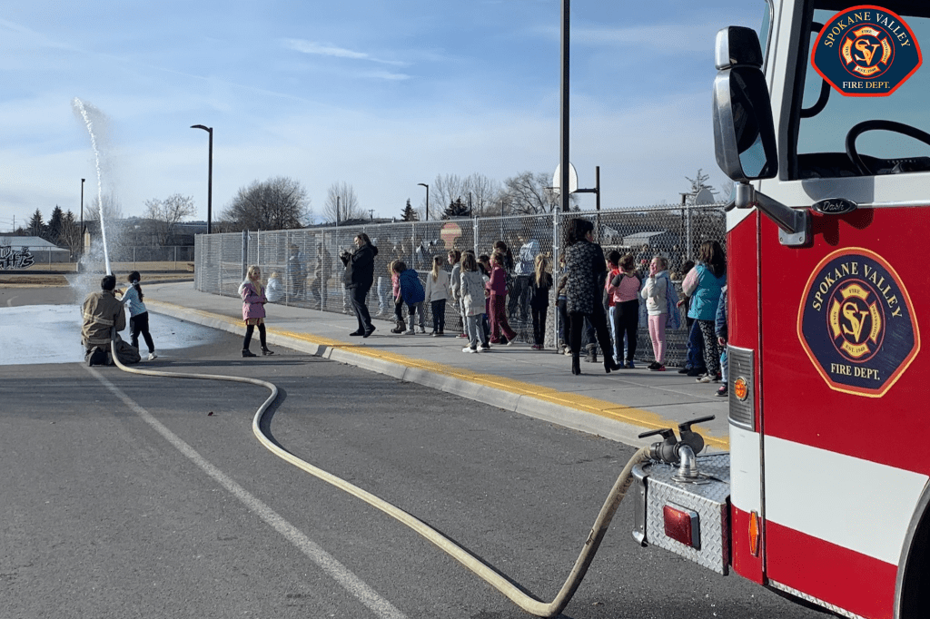 SPOKANE VALLEY FIRE DEPARTMENT: Firefighters spent time with the Trent Elementary School second graders for a show-and-tell as to what they do each day. Photo Credit/Source: SVFD