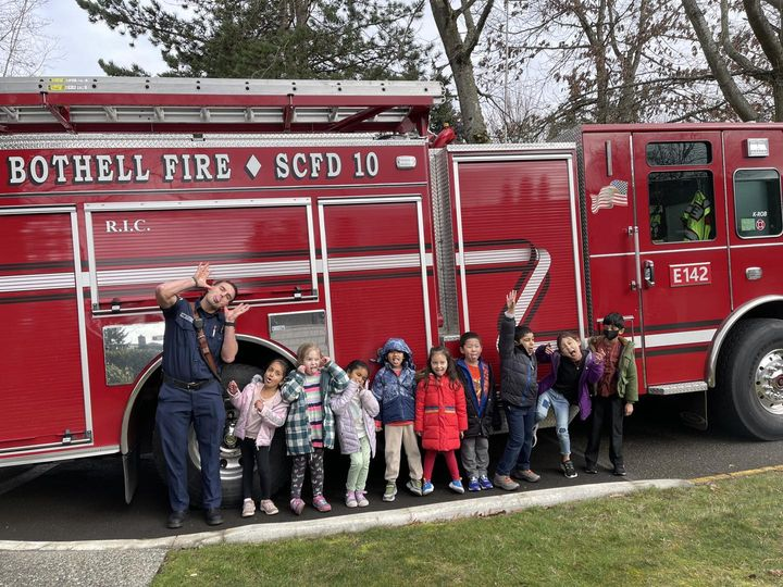 BOTHELL FIRE DEPARTMENT: SCFD10 firefighters had fun with the students from the Evergreen Academy. Photo Credit/Source: BFD.