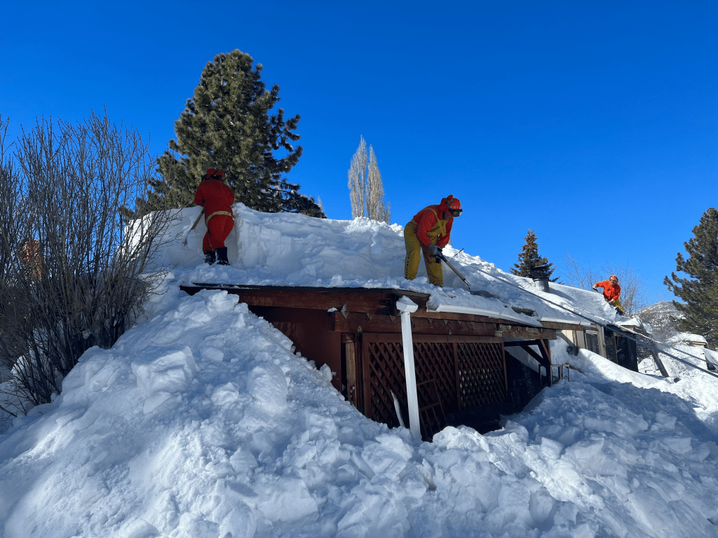 San Bernardino Mountains | Personnel and members with the CAL FIRE BDU are working in conjunction with the CA National Guard and other resources in the San Bernardino Mountains of Crestline to remove snow from roofs, gas meters, and driveways at homes in the area.