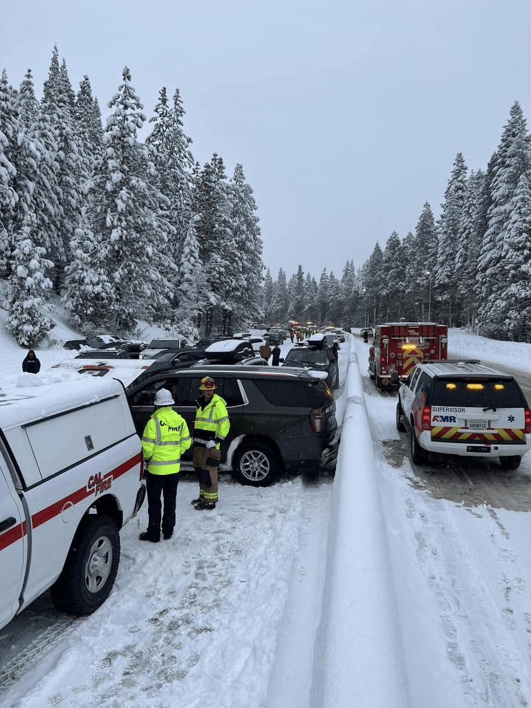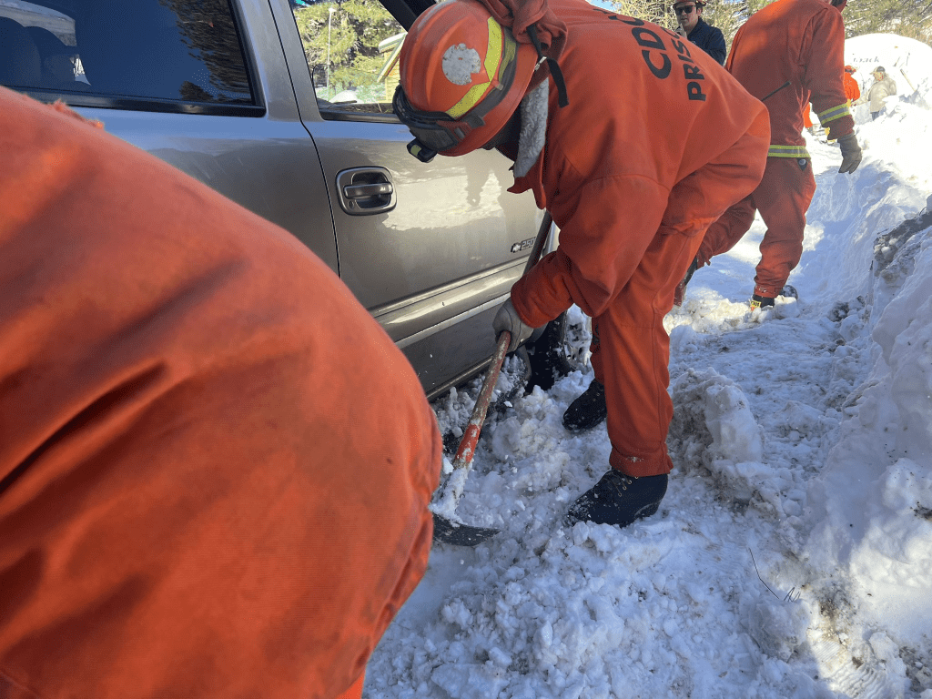 Teamwork | Resources from the San Bernardino County Fire Department are working together alongside CAL OES, CHP, and the CA Department of Corrections are helping dig from underneath a high number of feet of snow.