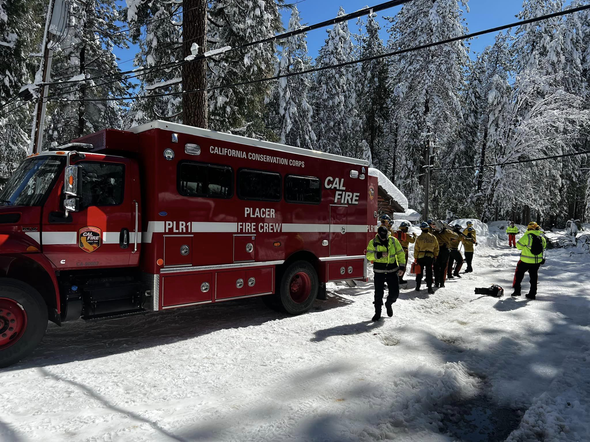 San Bernardino Mountains | Personnel and members with the CAL FIRE BDU are working in conjunction with the CA National Guard and other resources in the San Bernardino Mountains of Crestline to remove snow from roofs, gas meters, and driveways at homes in the area.