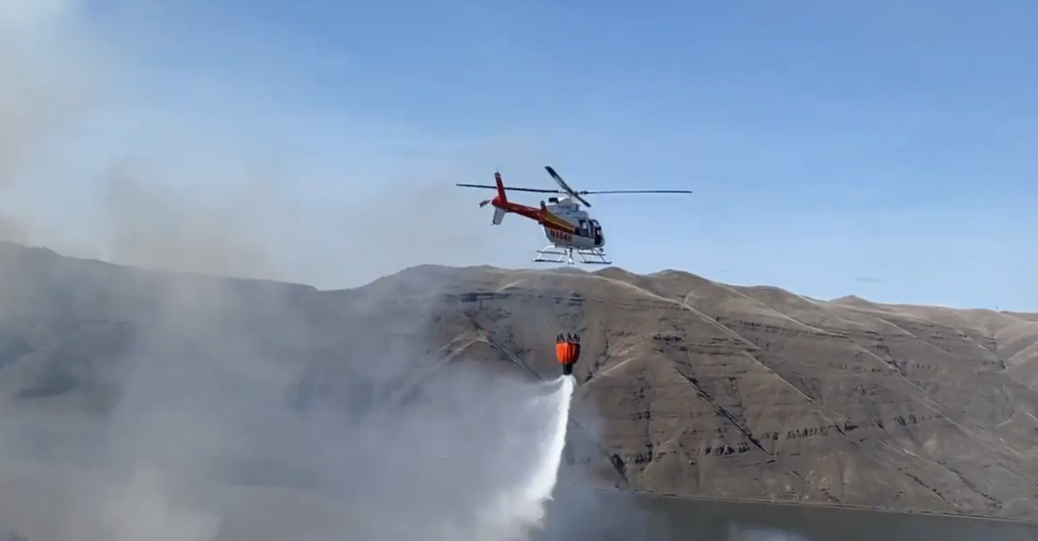 Firefighters were dispatched from the Asotin County Fire District #1, where the first due Command Officer arrived and reported a large wind-driven fire moving north and south with different fire flanks. Additional resources were ordered from their own fire district, along with mutual aid from the Cities of Clarkston and Asotin. A helicopter (Hillcrest Aviation) was requested and assisted with drops.