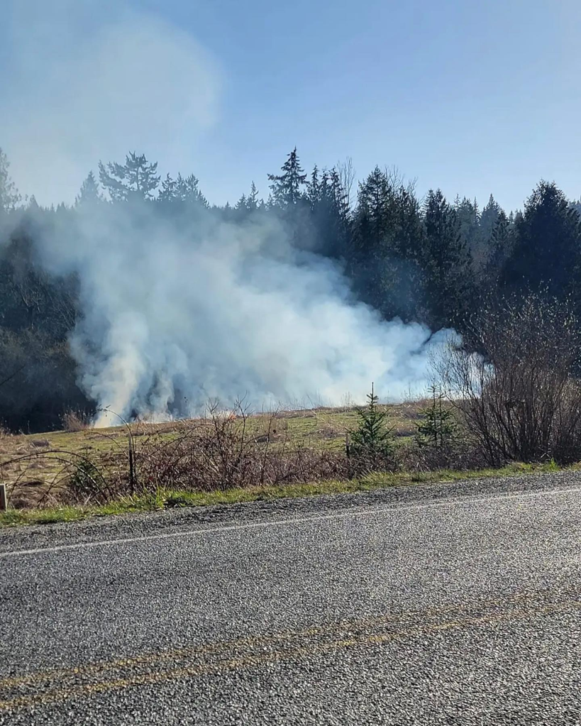 CONWAY FIRE — Mount Vernon Firefighters provided automatic mutual aid to the Skagit County Fire District 3/Conway-Cedardale FD on Saturday, which is the second brush fire of the day, located just outside of Conway. The cause is unknown. Fire crews were able to hold it at a one-acre fire. | Photo Credit: MVFD