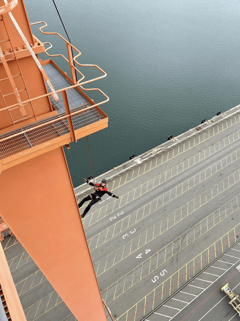 Members of the Agency’s Technical Rescue team spent time above the skyline practicing their vertical high-angle rappel operations alongside firefighters with the Tacoma Fire Department at the Washington United Terminals located at the Port of Tacoma.