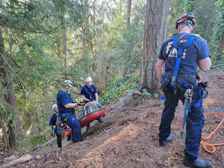 “Yesterday afternoon on Thursday, March 23, VRFA crews, with assistance from Puget Sound Regional Fire Authority, South King Fire & Rescue, and King County Medic One, conducted a rope rescue near the 2800 block of Elm Street SE.