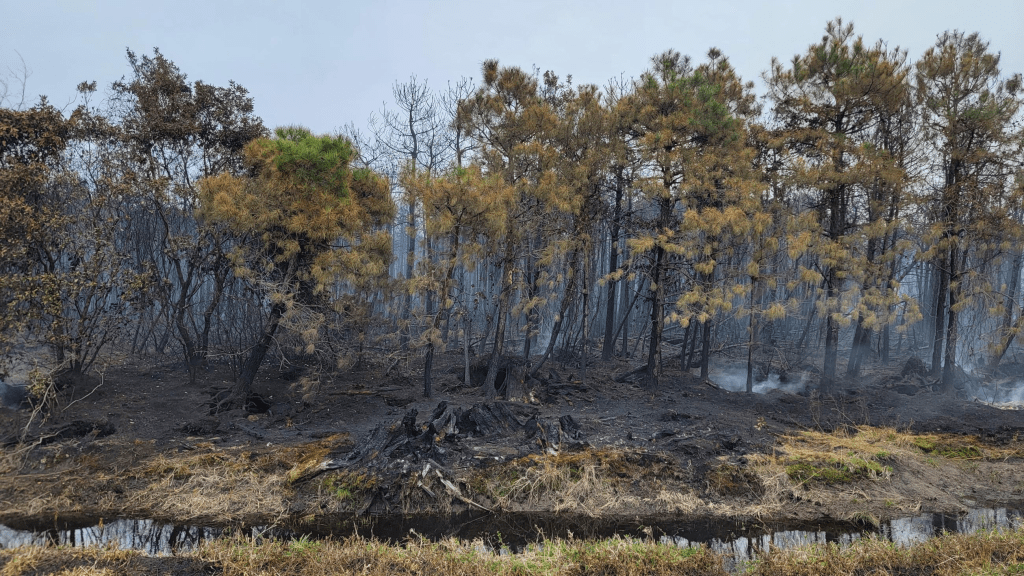 “Infrared (IR) flights will continue to evaluate the extent of ground fire as personnel finalizes a plan to utilize nearby freshwater sources to minimize loss of organic soil. Both fire and salt water will destroy peat soils. Protecting pocosins is foundational to healthy ecological and human communities. IR drone flights conducted Tuesday night revealed additional hot spots in the southeast fire area near Western Road.” – NCFS