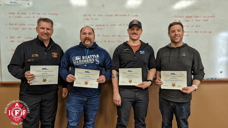 Three FF/Paramedics finished the first-ever NEMSMA FTEP course in Skagit County on Friday, April 7th, and were supported by other senior Medics from Mount Vernon FD, Anacortes FD, and Sedro-Woolley FD. This program certifies EMS providers in the creation and implementation of high-quality onboarding of new hires. To learn more about this great program, visit the Burlington FD Facebook page https://www.facebook.com/BurlingtonWAFire