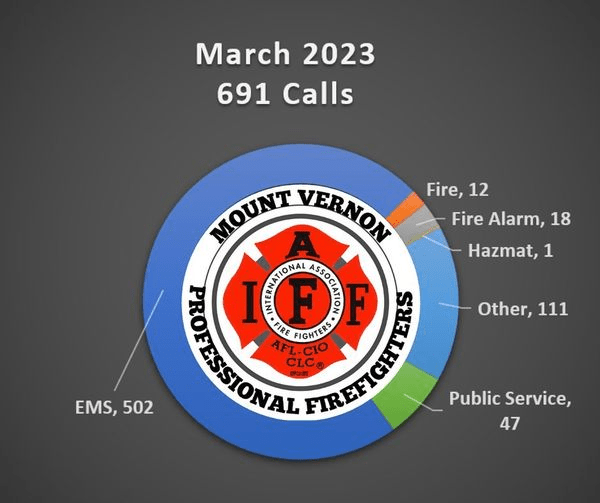 As part of the Mount Vernon Professional Fire Fighters labor union representing 54 professional Firefighters, Medics, and Battalion Chiefs serving the Cities of Mount Vernon and Sedro-Woolley, as well as the Skagit County as a whole. They have certainly had a very busy March 2023.