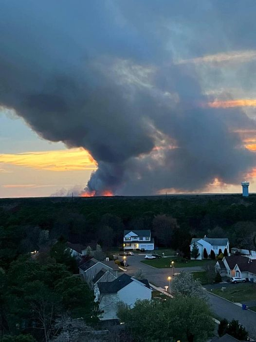About 25 homes are under threat. Structure protection is in effect by local volunteer fire departments from Ocean County.