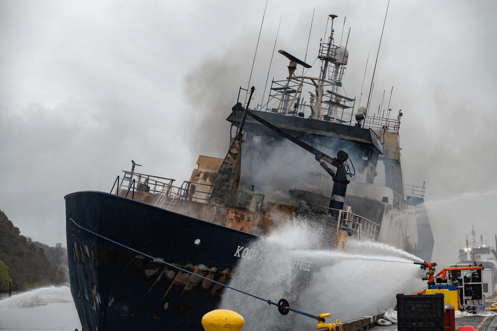 A fire broke out under the desk on the Kodiak Enterprise ship on April 8th. The USCG Pacific Northwest is still in Unified Command with the Tacoma Fire Department. Additional agencies are on the scene which includes the EPA NorthWest, ECYSeattle, Port of Tacoma and more.