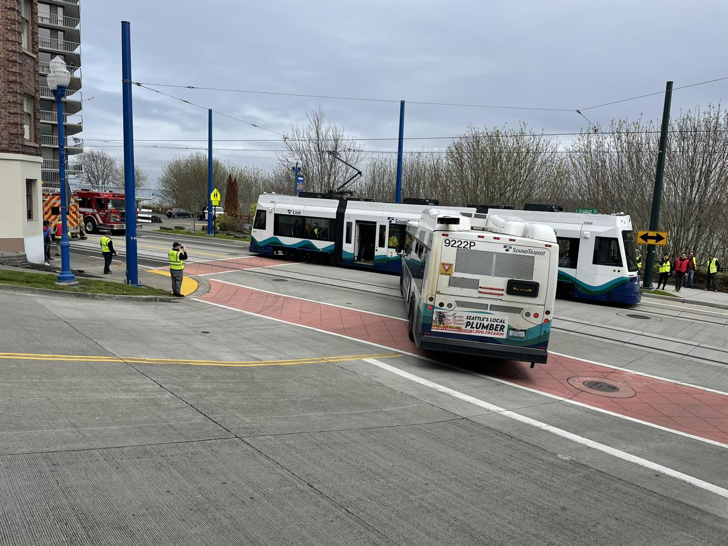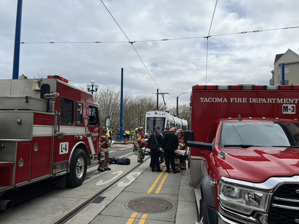A joint exercise between firefighters with the Tacoma Fire Department and Sound Transit was conducted on April 22, 2023, as mock accident scenario between a link light rail train and a bus in the Stadium District of Tacoma to simulate a respond during a mass casualty incident or known as MCI for short.