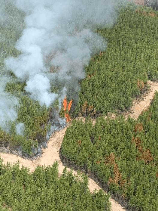 The RWF040 is located 6 km northeast of the Forestry Truck Road and Brown Creek Provincial Rec area. It is an out-of-control wildfire. It is currently being monitored. Estimated 4,544 ha. Growth was observed as increasing in the West. Though the Blackstone Lookout Tower is in the area, it is currently not under direct threat.