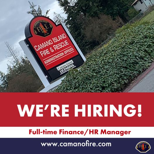 The Camano Island Fire & Rescue (Island County) Fire agency is not looking for a firefighter or medic, but someone who has the skills, knowledge, and experience to be their Finance/HR Manager for their Administration Office, which is a very important role for any organization. Time to put those life-organization skills of managing budgets, financial reporting, and grants, as well as understanding benefits management work, and make a difference with this Fire Agency.