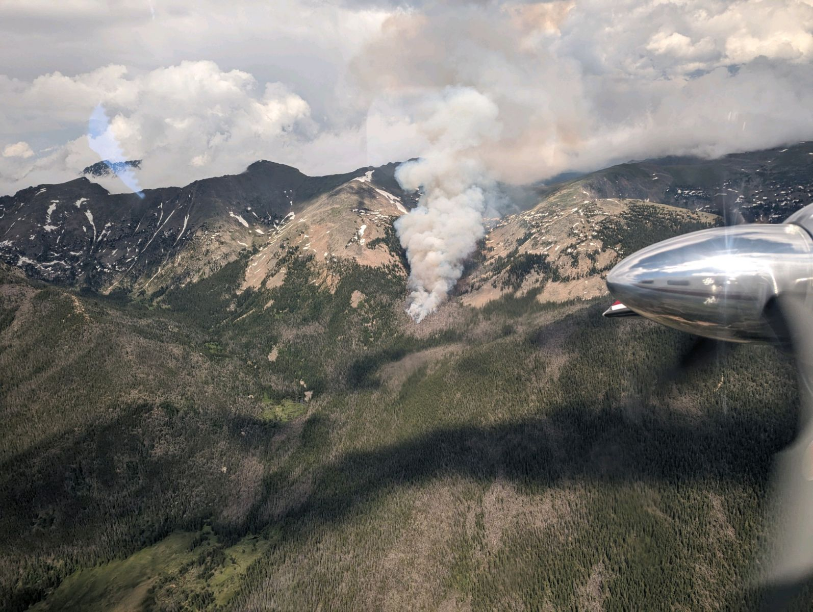 A newly reported wildfire named the DEVILS THUMB FIRE was reported on the afternoon of July 4, 2023, in the Indian Peaks Wilderness in Grand County, Colorado. At the beginning of the incident, it was reportedly a 20-acre in size fire. Fire suppression aircraft from the U.S. Forest Service and Grant County immediately were dispatched and quickly arrived on the scene. No evacuations were issued at that time.