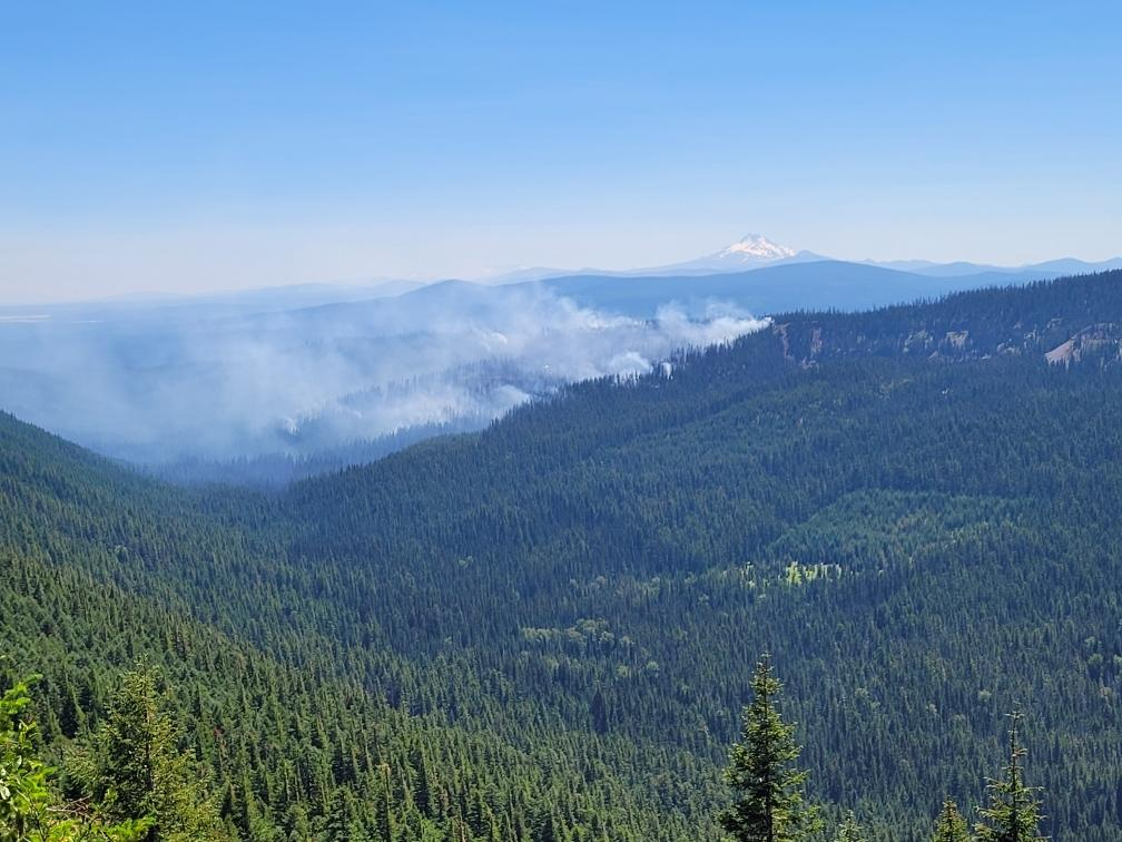 The BOULDER CREEK FIRE is located about 26 miles southwest of Dufur, which is southeast of Mt. Hood near the Boulder Lake Trailhead. It was reported on July 8, 2023, prompting firefighters and equipment from the Mt. Hood National Forest (USFS) to respond.