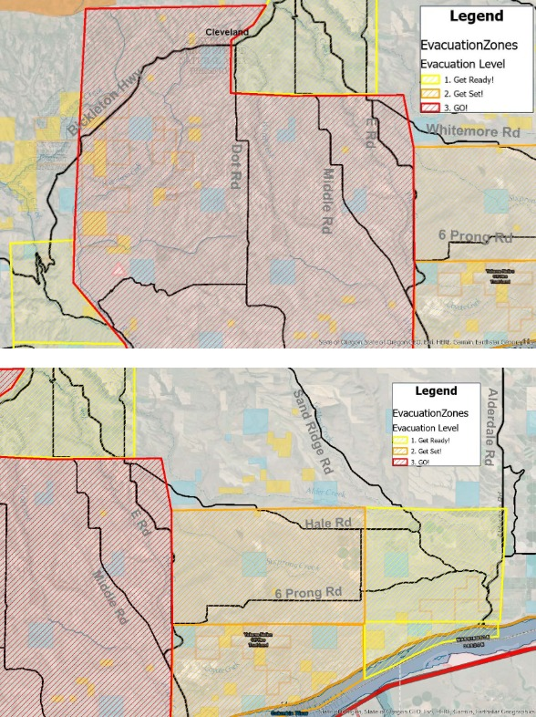 Currently, as of 1020 hours this morning, the fire is threatening residents, their homes, farm structures, livestock, crops, solar and wind farms, the Williams Natural Gas Pipeline, and the Roosevelt Landfill. Evacuations are in effect along with structure protection of towns, communities, and many areas.