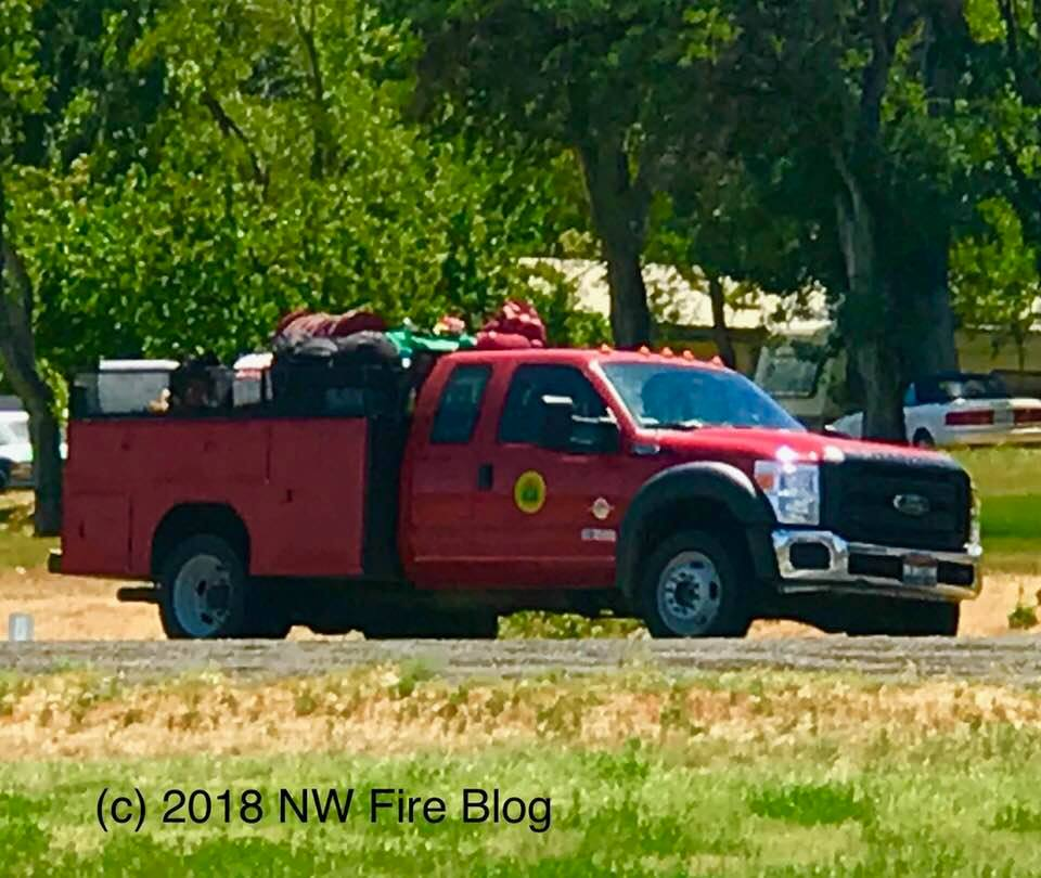 Firefighters staffing Tender 1 from the Moses Lake Fire Department joined the Grant County Strike Team assigned to the Fire in Kittitas County on August 1. The fire at this time had burned about 5,000 acres with 0% containment status.