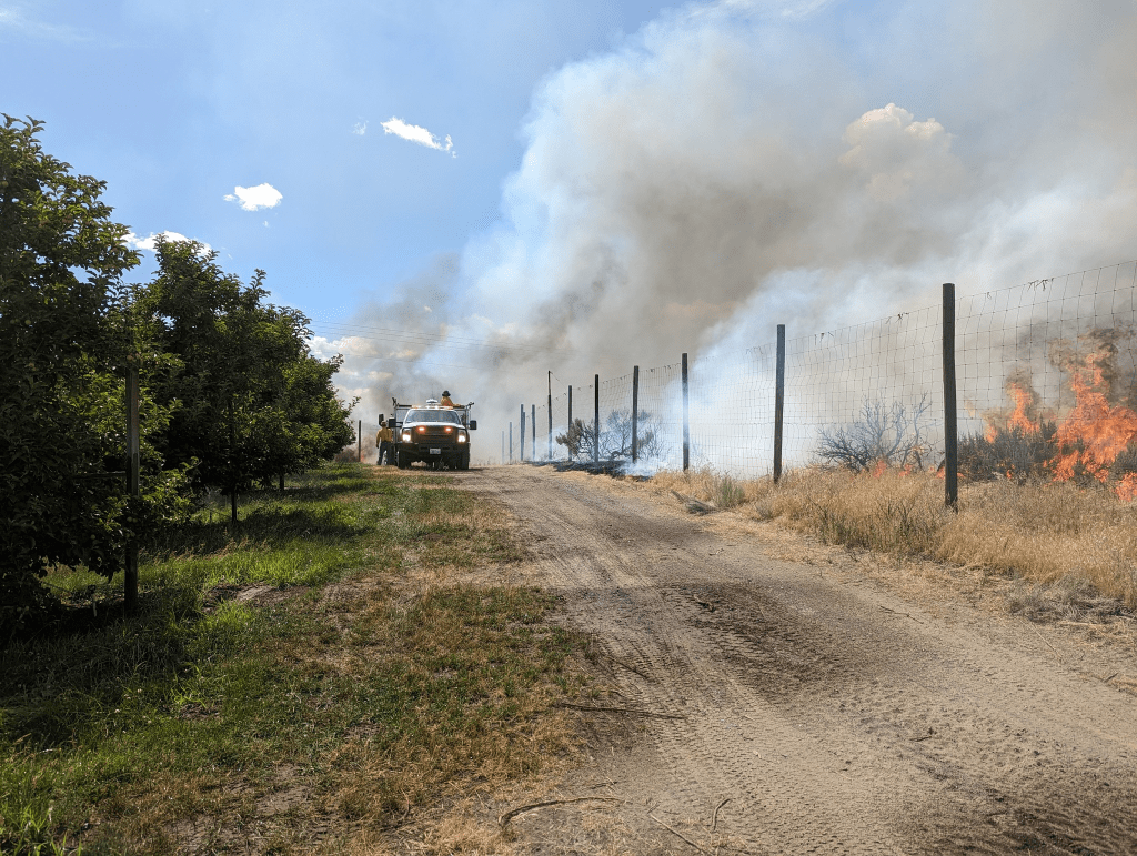 (L) Walla Walla County (Burbank, WA) Firefighters respond to a very large brush fire on July 13, 2023. | Credit: WWCFD5