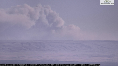 Around 1000 hours into Day 2, the fire had more than quadrupled in size to 30,000 acres with a 0% containment status. It could now be seen on both the Anderson and Status Peak AlertWildfire cameras.