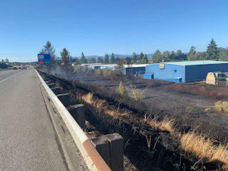 As of 1953 hours PT, the WSDOT is reporting traffic is getting through the area where the fire scorched brush but there is a minimum of a three-mile backup. For anyone who has driven through this area on a regular basis, knows traffic is slow through here, even without any incidents. Please back your patience and don’t road rage or tailgate other cars.