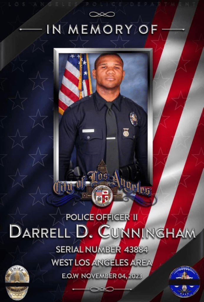 Off-duty LAPD Police Officer 2, Darrell Cunningham was killed today in what Law Enforcement Officials was a preventable traffic collision.