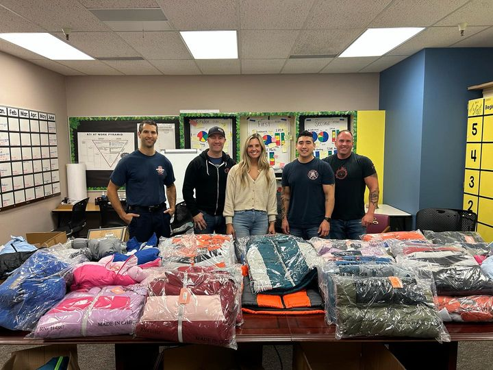 Firefighters with the Graham Fire & Rescue agency volunteered their off-duty time to help distribute new winter coats to the students from Rocky Ridge Elementary on Thursday morning.