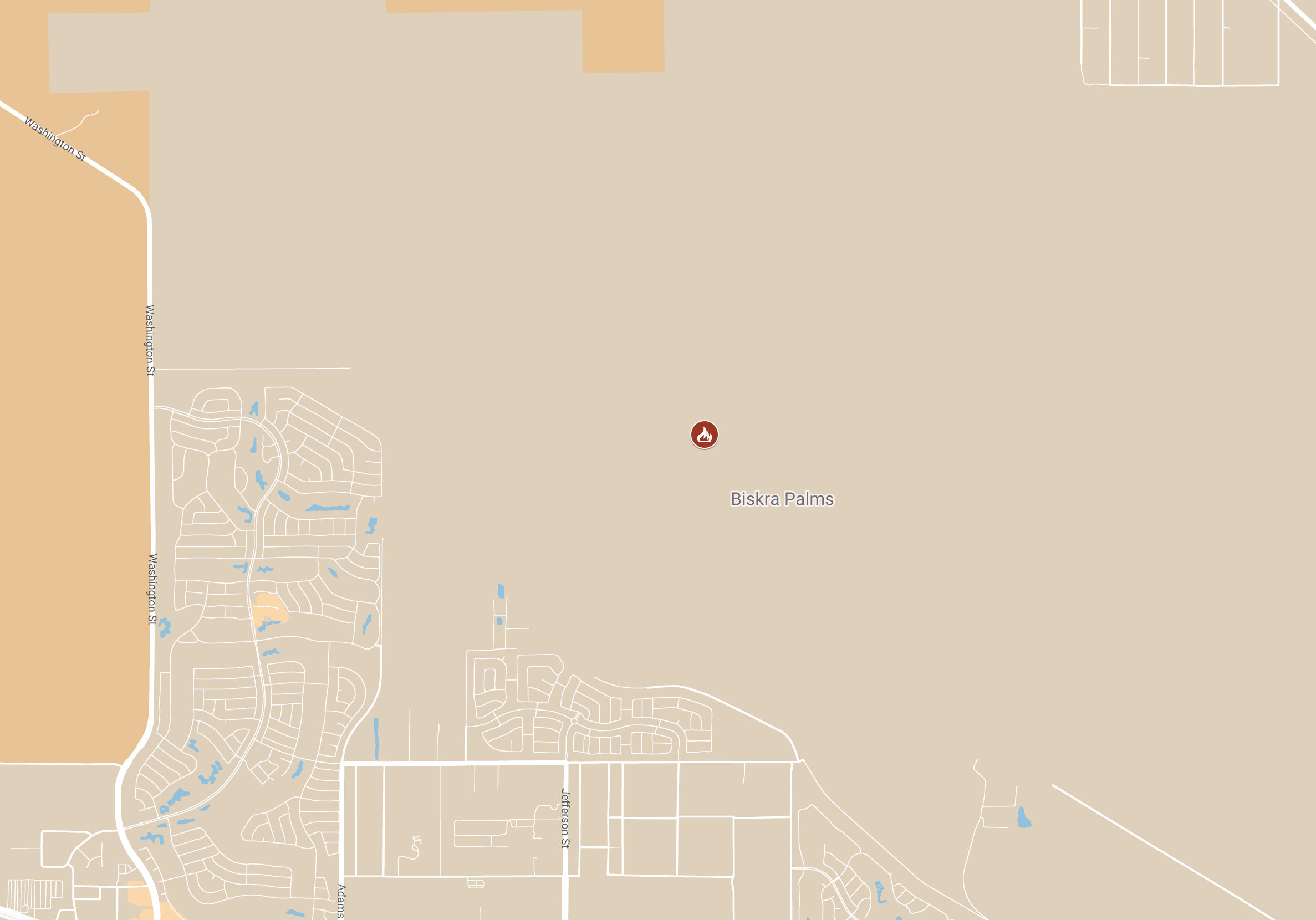RIVERSIDE COUNTY, CALIFORNIA — Firefighters from CAL FIRE / Riverside County Fire Department are on the scene of a brush fire as of 1727 hours PT on Washington Street and Coyote Song Way north of Indio.
