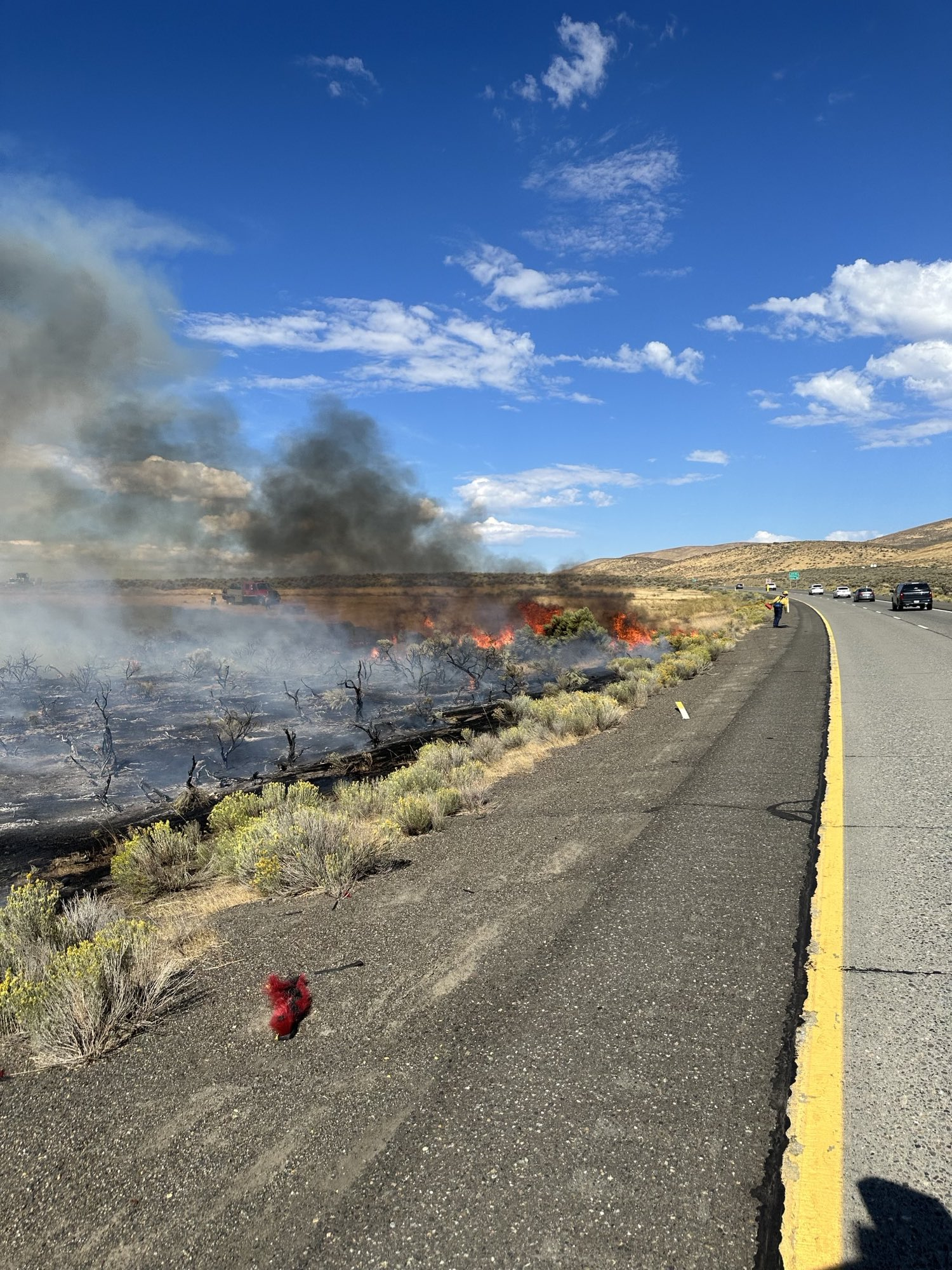Just after noon, the WSDOT East area closed eastbound I-82 at Ellensburg due to the wildfire. The westbound lanes were open. However, the roadway on SR 821 was closed through the Canyon in both directions.