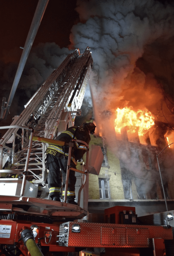 First due on the scene were firefighters from Station 10 (downtown location) and 25 (Capitol Hill). They reported back to their Dispatch Center at the FAC, that heavy and thick black smoke was visible from four-story vacant residential structures with heavy fire impacting multiple floors of the structure.