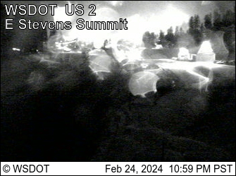 (L) Not a very good photo image of the Pass due to wet conditions on the webcam. Photo Credit: WSDOT