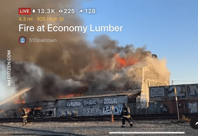 Photo Credit: Citizen.com (posted by @oaklandfirelive)