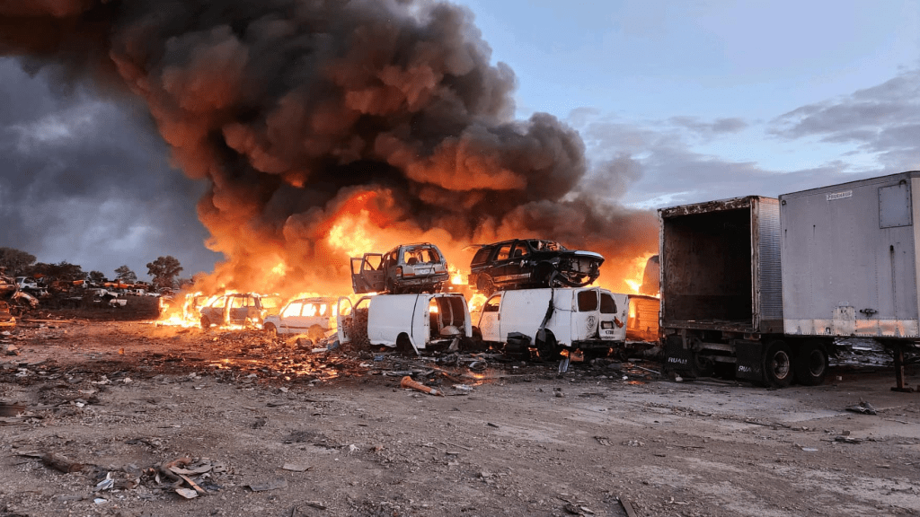 It was reported that the fire had taken multiple cars inside the salvage yard.