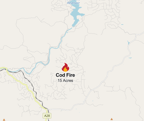 LOCATION: It is burning near Cod Drive in Hornbrook (Siskiyou County), California, designating the name COD FIRE.