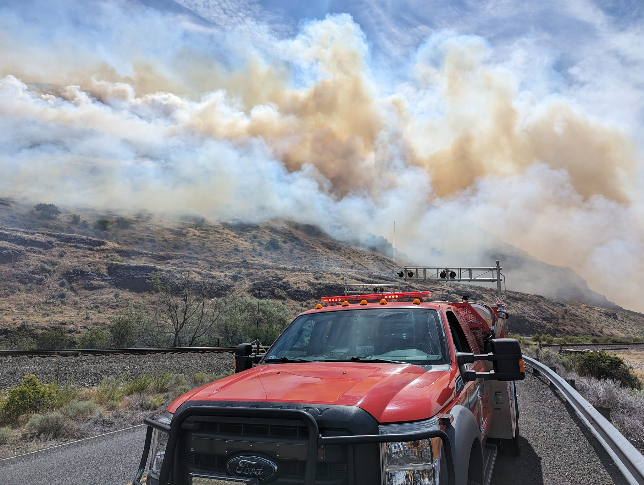 Whitman County Fire District #14: Firefighters were on the scene of a fast-moving wildfire just before 1000 hours this morning on Wawawai Road near Nisqually John Landing. Fire Officials are asking folks to stay away from this roadway and Steptoe Canyon Road. They stated that water on the Snake River will be shutdown in the area as this will be a water supply for air assets to draw from and they to part all users in this area.