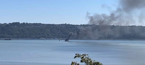 Firefighters responded this morning to a boat fire near the Tyee Marina in northeast Tacoma, Washington State.
