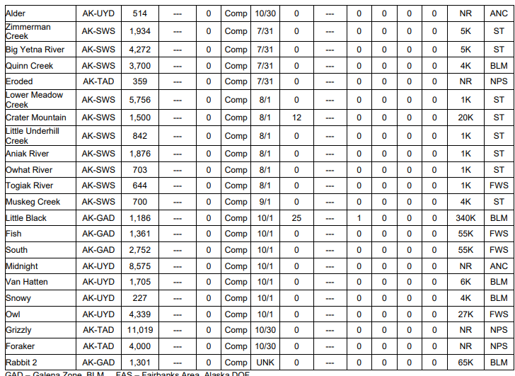 Here is a list of the few samples of wildfires burning in the State of Alaska.