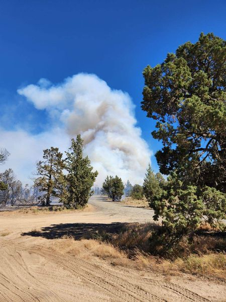 Just after 1700 hours (1712PT), the fire behavior had grown more active and burned through 100 acres of brush. Multiple BLM/USFS engines, air tankers, and heavy helicopters were reportedly on the scene and engaging in initial attack efforts along with the Redmond (OR) Fire Department.
