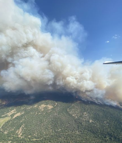 An estimated 4,500 acres of timber and grass have been burned and remain with a 0% containment status. The fire behavior is still being observed as active with wind-driven runs and spotting.