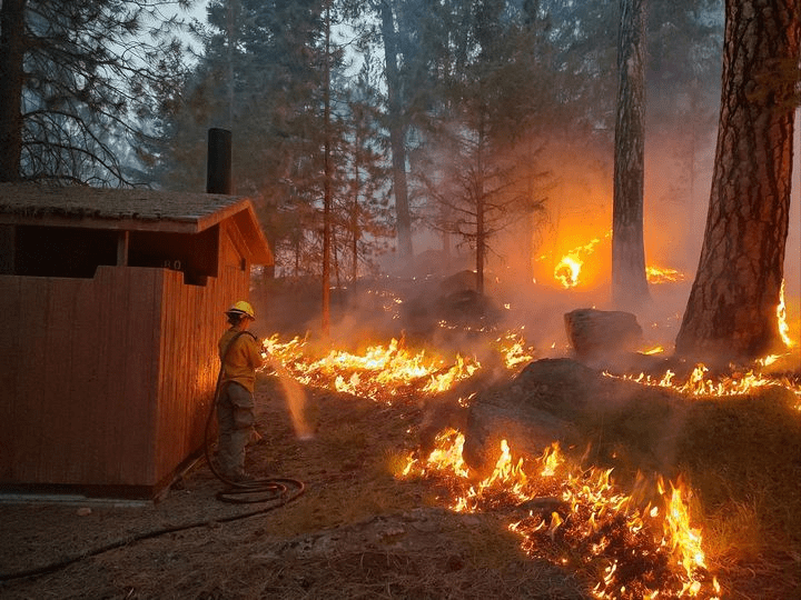 Fire behavior has been observed as active with uphill runs, wind-driven runs, and spotting, threatening structures.