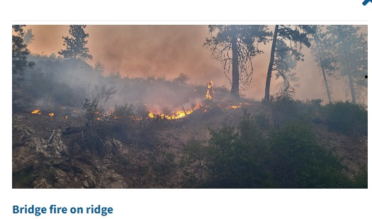 The BRIDGE CREEK FIRE broke out on July 19, 2024, from an unknown cause, and is located about 15 miles south of West Fork north of Bridge Creek, and east of Elbow River in Washington State.