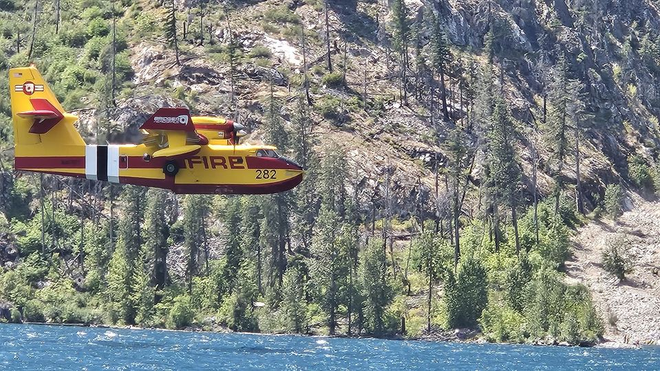 “Two Type 1 helicopters were assigned to the fire yesterday. The Yakama Nation assisted with reconnaissance operations utilizing a Type 3 helicopter. This coordinated effort allows fire managers to develop situational awareness and identify potential control features. Scooper planes will continue to be utilized on the fire and are being filled in the Columbia River.