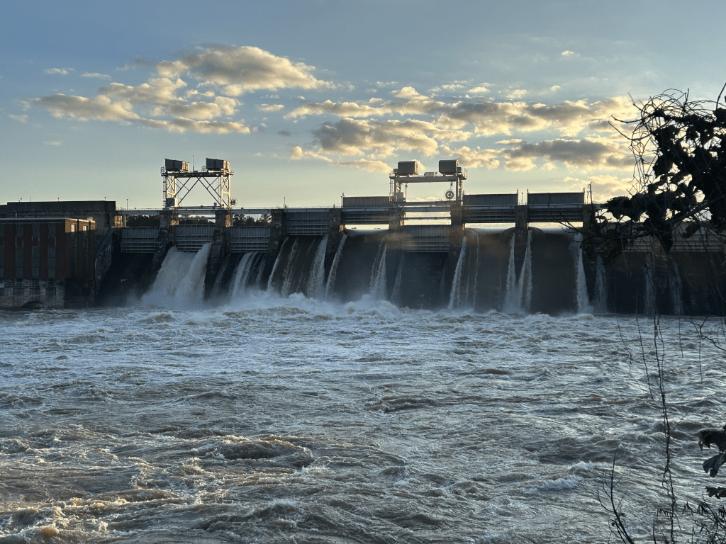 Oxford Dam – Floodgates opened at Oxford Dam over Lake Hickory. (9/27/2024, NCDOT). Photo Credit | NCDOT.
