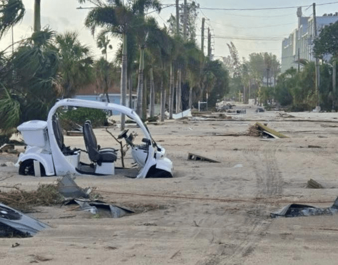Tampa Bay Beach (& Bay areas) – The surge that occurred on September 27, 2024 (last night) was the highest in over one hundred years, which resulted in flooded homes and cars, damaged properties, boats washed ashore, and sand-filled streets. (Photo Courtesy, 9/27/2024, Meteorologist Bryan Bennett)