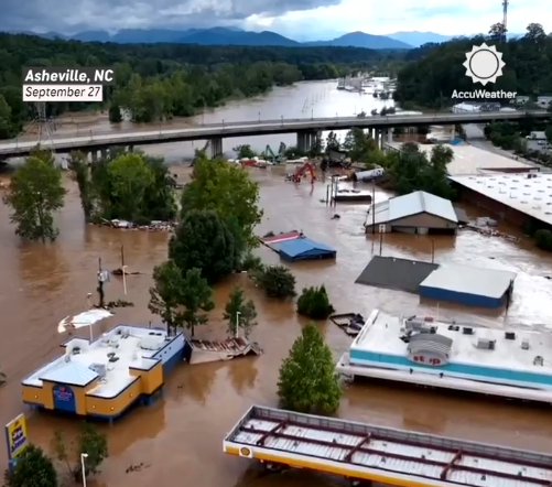 Asheville – Extensive flooding. (9/28/2024, Photo Credit: AccuWeather).