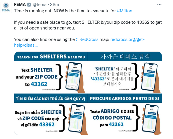 Regardless, Milton will likely be the most powerful hurricane to hit this area in over 100 years. Mandatory and voluntary evacuations are in place across Florida’s west coast due to the surge and flooding rains. See below for a FREE shuttle service tomorrow to safe locations.