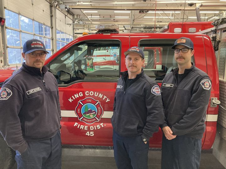 Photo Description: January 1, 2025, Duvall KCFD45 will contract with Eastside Fire & Rescue. Pictured (L to R): Captain Dhoore, FF DAvidson, and FF Johnson (Station 166).