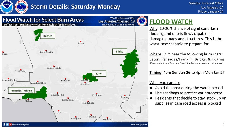Folks who were previously evacuated are now being allowed to repopulate the same communities and should remain aware of potential mudslides/mudflows due to forecasted heavy rain in the next few days.