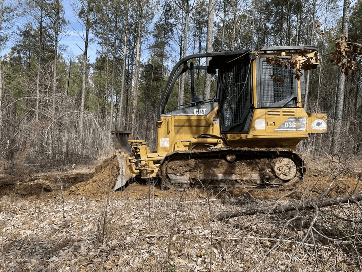 Photo Credit | AL Forestry Commission, Photo of a Forest Ranger pushing firebreaks for a landowner in Fayette County.
