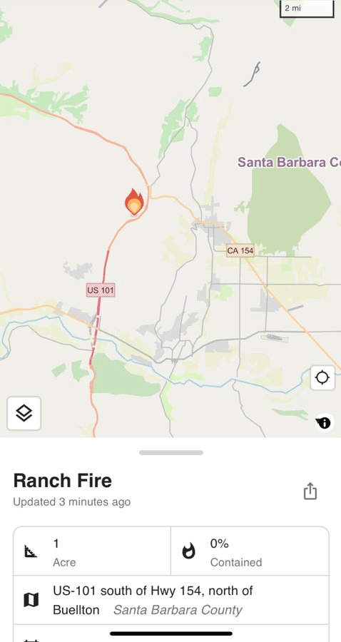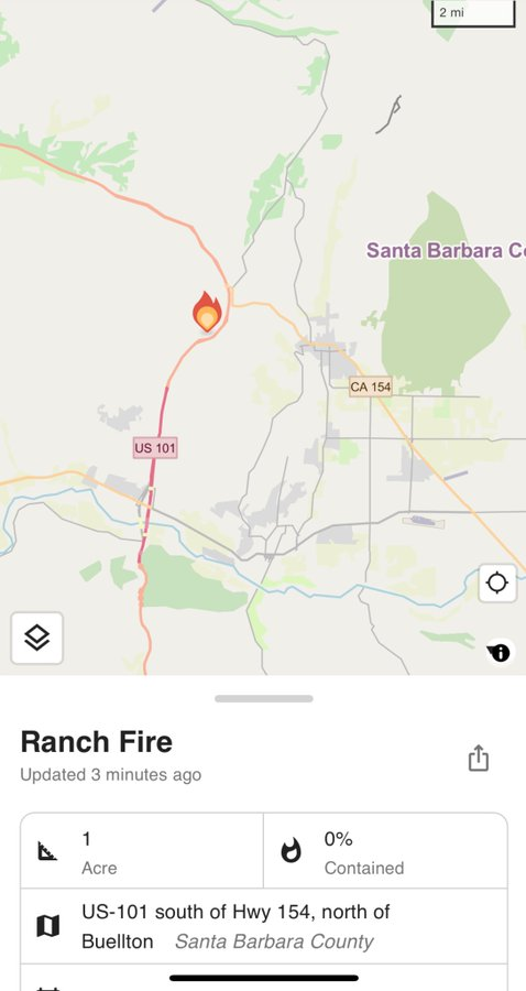 A wildfire was burning on US-101, south of Hwy 154, north of Buellton.
