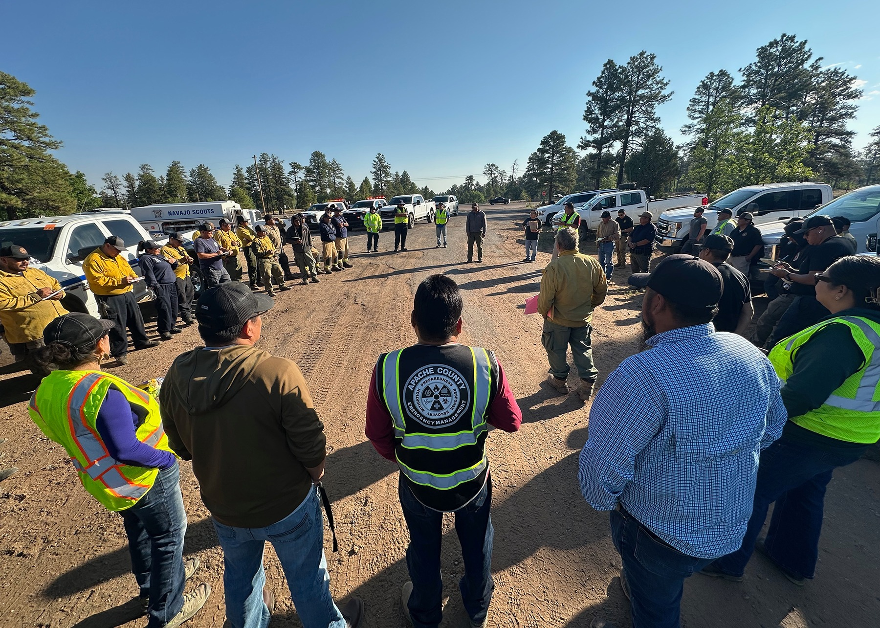A briefing was made by the President, with several council delegates, and emergency response personnel with the Incident Command, in how the fire has burned over 1,000 acres, with a zero containment status.